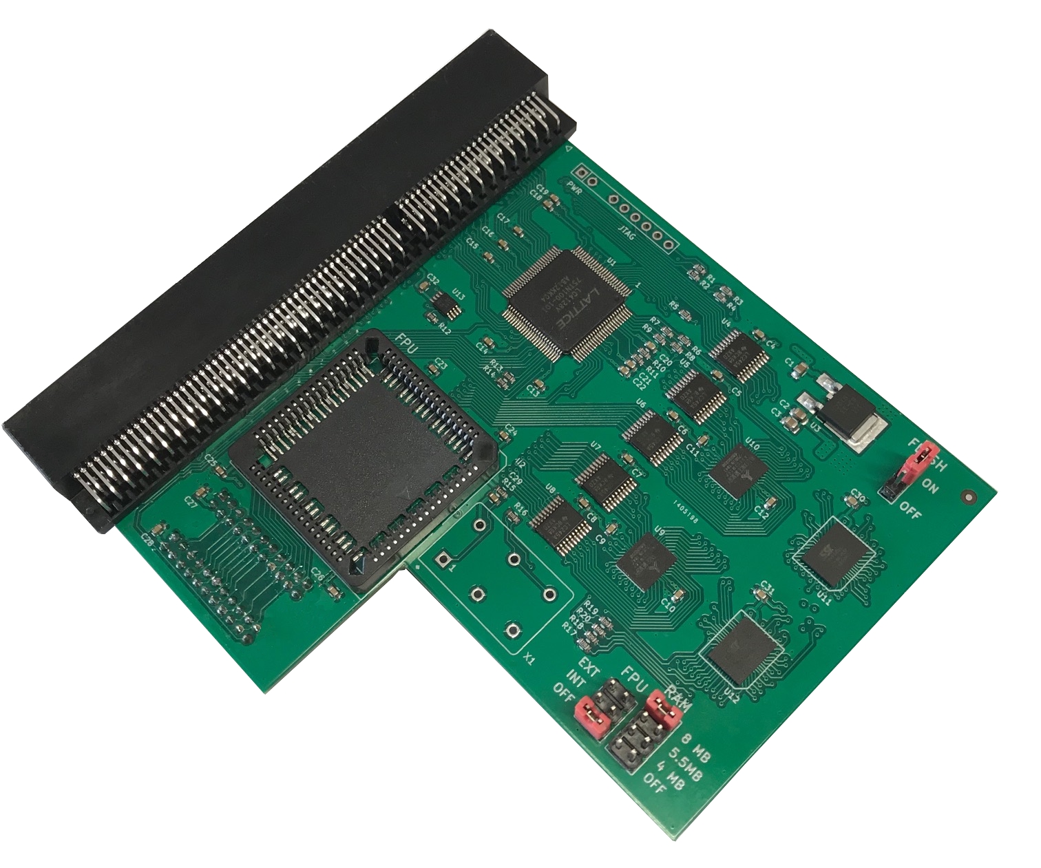Memory can be configured to 4MB, 5.5MB or 8MB Fast RAM using on-board jumpers or early boot menu.