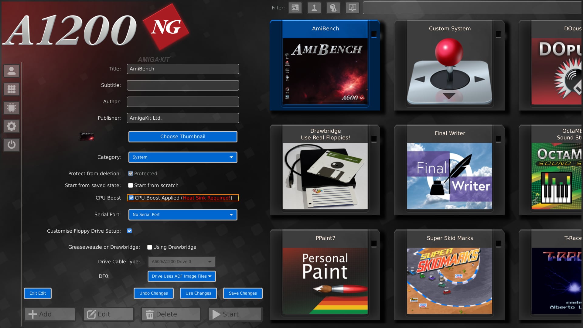 The software increases the CPU clock speed of the A1200NG from 1.5Ghz to 1.7Ghz when the CPU Boost option is enabled. It can be toggled on/off for specific software titles.
