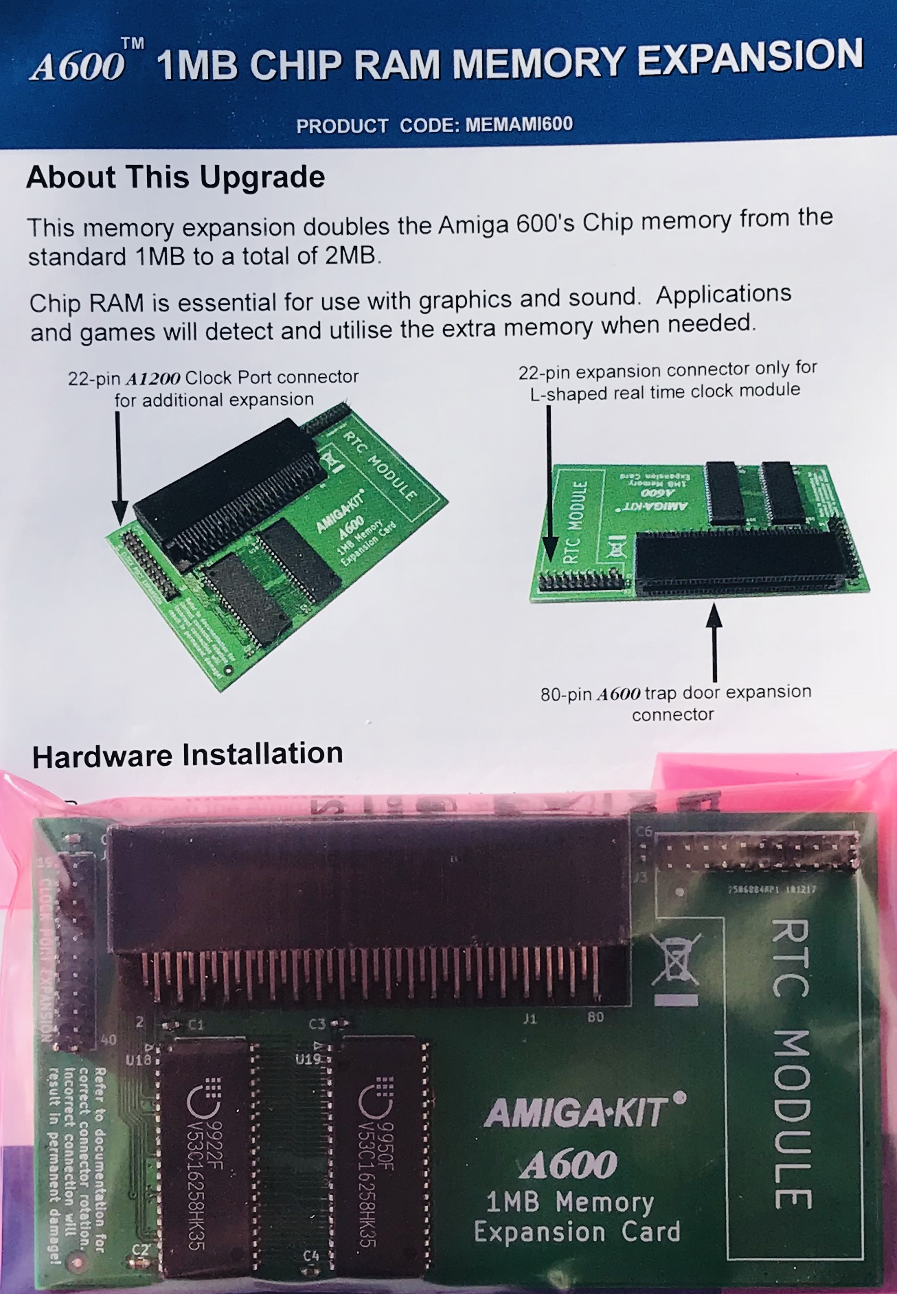 This will give the Commodore Amiga 600 computer more graphics memory which is useful for WHDLOAD games and most programs such as Personal Paint.