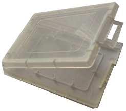 Clear plastic with fastener used to help protect Compact Flash memory cards when not in use.