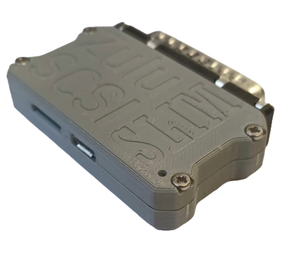 ZuluSCSI Pico Slim is the smallest member of the ZuluSCSI Pico based ZuluSCSI emulators, and likely the most compact SCSI emulator in the world. ZuluSCSI Pico Slim is designed for direct-attach use with any device that has DB25 SCSI ports, such as most legacy Macintosh computers. ZuluSCSI Pico Slim is equipped with a high-quality Molex-manufactured push-push microSD card socket. The included 3D-printed clamshell enclosure is strong and compact.